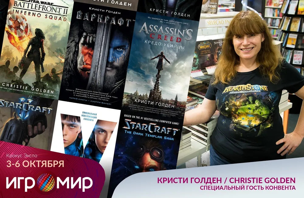 Например, именно благодаря Blizzard российский ИгроМир и Comic Con посетит американская писательница-фантастка Кристи Голден, известная своими произведениями по вселенным World Of Warcraft («Рождение Орды», «Артас: Восхождение Короля-Лича», «Джайна Праудмур. Приливы войны» и пр.), Starcraft, Star Trek, Assassin's Creed, Star Wars и др.
