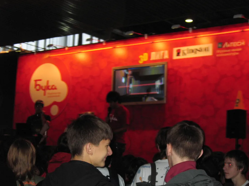 Gamer.ru и Gamer Ring! Сев на правую от плазмы(с противоположной стороны от машины), мы заняли ближайшие к сцене места, понабрали всего, что раздавали три красавицы со сцены, прошли настольную игру Gamera, добравшись до щита, и стали ожидать битвы. К сожалению бой задержали на несколько минут, что привело мой старенький Canon к плачевному уровню зарядки, но дождавшись боев мы стали ими наслаждаться.