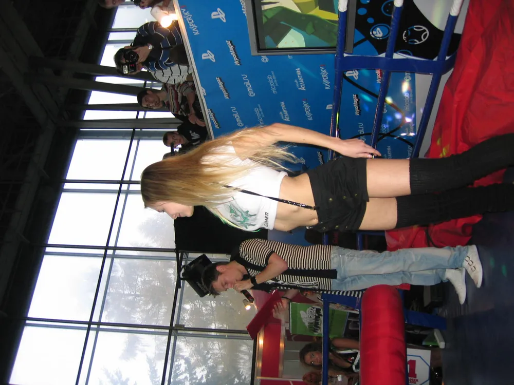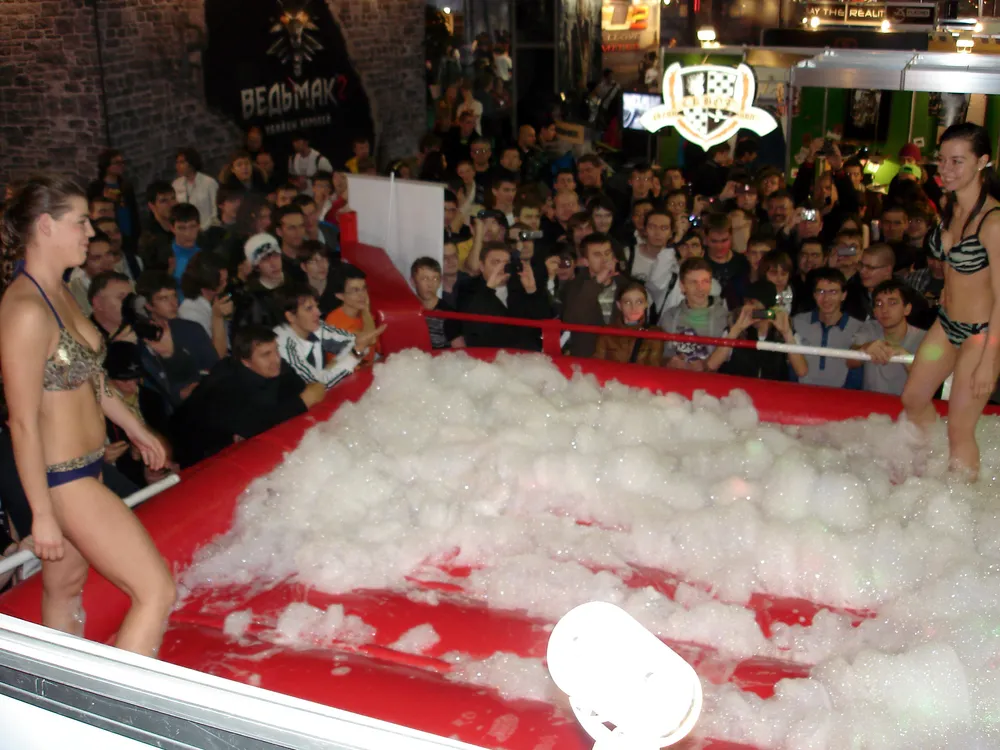 World of Tanks (а ведь при начале чтения их названия, я даже поверил в чудо), на стенде которых танцевали в "башнях" обворожительные девушки.