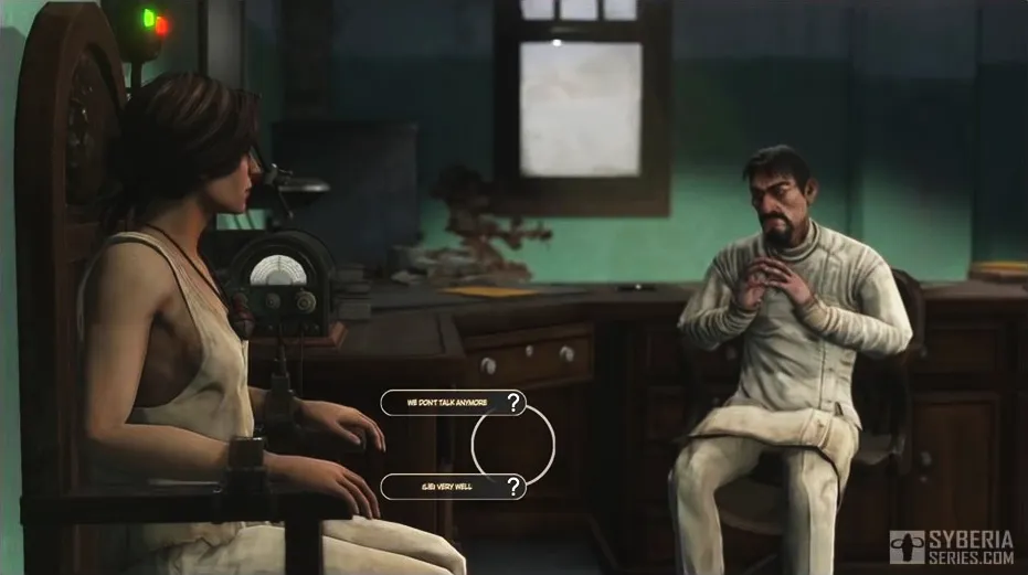 Система диалогов и их сюжетная роль в третьей части существенно усложнилась по сравнению с предыдущими частями. Для поиска подсказок и продвижения по сюжету нам придется не только общаться с неписями различной степени значимости, но и внимательно прислушиваться к их беседам между собой. В этих, на первый взгляд, совершенно не относящихся к делу разговорах будут раскрываться и детали истории, и ключи к решению загадок, и прочая полезная для Кейт информация. А еще в диалогах появятся взаимоисключающие реплики, обеспечивающие нелинейность в развитии сюжета. Отвечать на вопрос о количестве доступных концовок представлявший игру Илия отказался, но уверил, что в отличии от проектов студии TellTale однажды сказанное Кейт Уолкер действительно повлечет за собой последствия, положительные или не очень. Так, если наша героиня нагрубит, допустим, какому-нибудь второстепенному NPC, она рискует лишиться альтернативного, возможно более интересного, способа достижения той или иной цели или же вовсе не получит головоломку, раскрывающую занятный сюжетный поворот. Принцип реализации диалога с выборами демонстрировался в игромировской презентации на примере общения Кейт с одним из врачей больницы – доктором Менгелем, к которому она попадает почти сразу после того, как покинет палату. Коли девушка предпочтет скрыть от него правду, ее встреча с доктором Ольгой во второй главе окажется куда менее приятной, чем если бы она с самого начала рассказала все без утайки. Ну, а если она вдруг отважится задать неудобные вопросы Менгелю, то и это отразится на дальнейшем ходе событий.