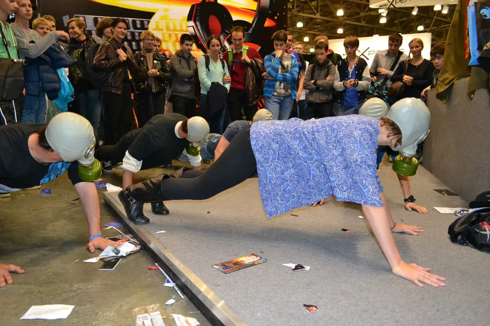 Vostok Games оккупировала для своего детища — сессионного F2P-шутера Survarium — самое козырное место для стенда, какое только можно было занять. Стенд B6 находился ровно в центре четвёртого зала, находясь в своего рода треугольнике Wargaming-Xbox/PlayStation-СофКлаб. Так что пройти мимо него было хоть и теоретически возможно, но проблематично, учитывая, что рядом с ним пролегало большинство маршрутов между самыми популярными участниками выставки.