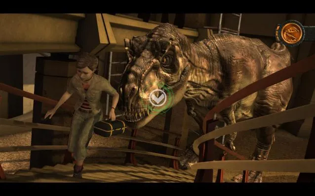 Когда нажимать на «стрелки» необходимости нет, Jurassic Park: The Game пытается увлечь игрока изучением местности – нужно лишь двигать камеру в разные стороны и отыскивать те предметы, на которых светится значок лупы, тыкая в те или иные места. Это надоедает уже в самом начале первого эпизода, когда через бинокль девочка ищет в джунглях динозавра. (Руссоквест?) Обычно достаточно лишь трех-четырех нажатий, но на деле приходится совершать около двадцати, попутно выслушивая неинтересные комментарии надоедливого попутчика. Есть здесь и логические загадки, однако ломать голову придется от силы дважды – в остальных случаях решение угадывается быстро.