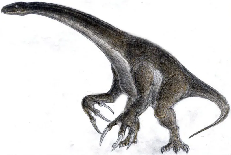 А этот ящер интересен тем, что до сих пор найдены только отдельные фрагменты позвоночника и почти полные передние конечности. Но что это за лапы! Каждая по 2,5 метра длиной, с когтями по 25 сантиметров каждый. Его дальнейшая реконструкция пока затруднена: если он был растительноядным, то очевидно образ жизни вёл снова подобный гигантскому ленивцу. Но перед нами не только загадка, ждущая своего дальнейшего раскрытия, но и ещё один впечатляюще крупный динозавр,.