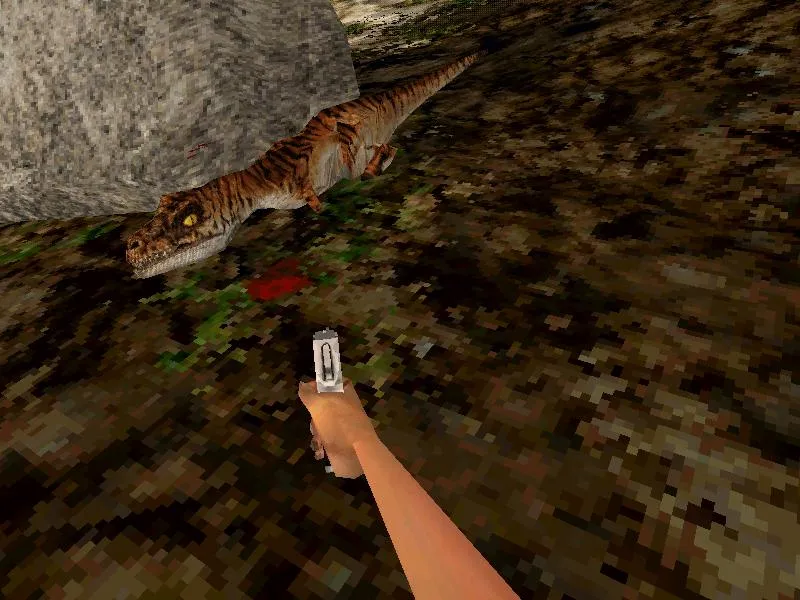 Jurassic Park: Trespasser предлагал возможность не просто поглазеть на динозавров, пострелять в динозаров, побегать от динозавров - словом, был не только виртуальным переложением аттракциона с этими ящерами. Это была попытка сделать игру про выживание, и потому там были воплощены такие - и в наши дни редкие - элементы, как: чувство своего тела, манипуляции с окружающими предметами с помощью своих рук (точнее руки), симуляция физики и другое, о чем рассказ далее.