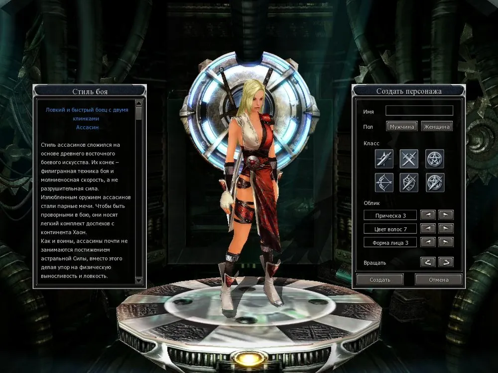 Немного расскажу о процессе создания. Он предельно прост - 2 пола, 6 классов, примерно десяток вариантов трех параметров кастомизации. Все просто, не надо тратить времени, можно сразу же перейти к игровому процессу.
