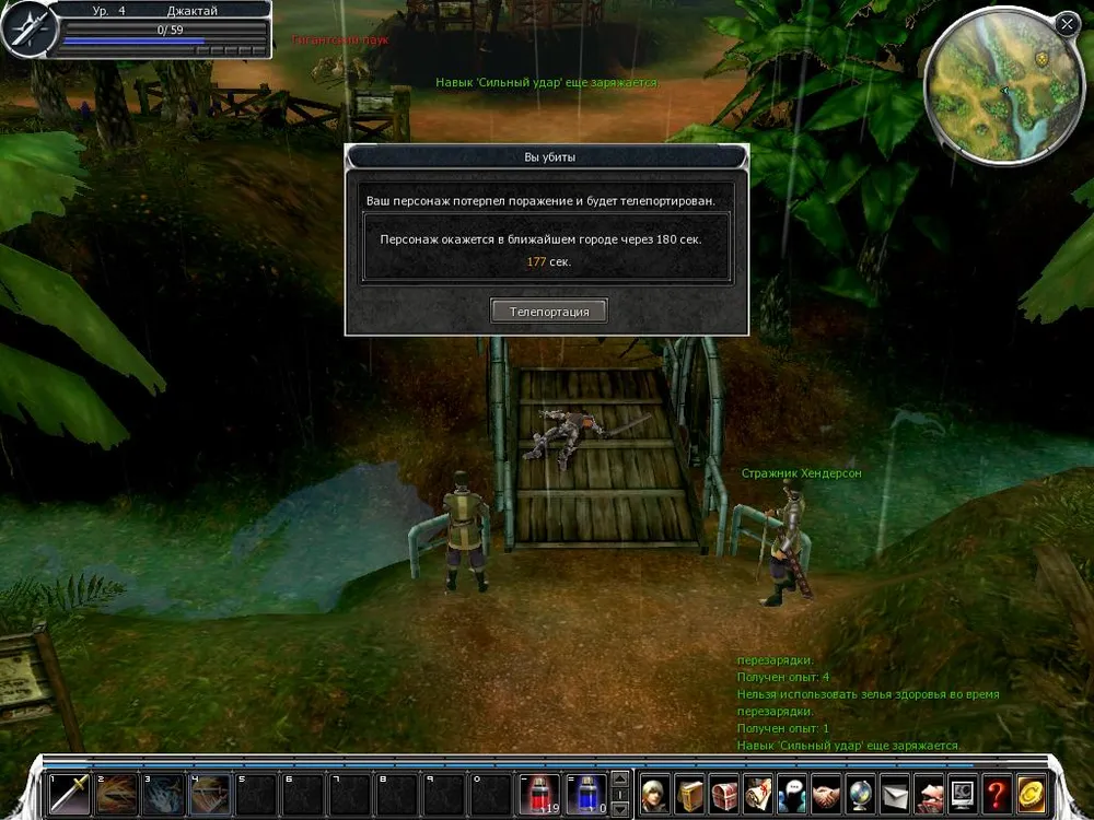 В начале игры штрафа за это мы не получаем и нажав кнопку "телепортация" можно мгновенно возродиться в ближайшем городе.