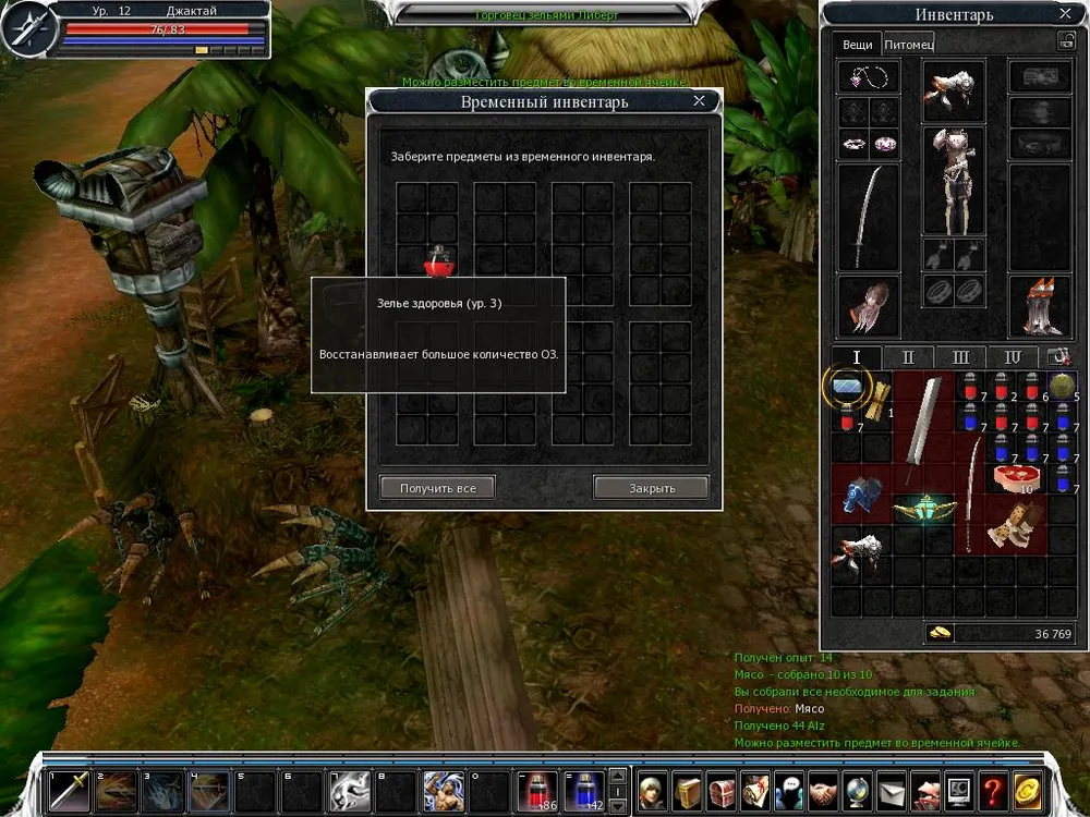 Иногда из мобов будут выпадать "лампы Аладдина", потерев которые можно будет получить ценный подарок. Мне достались комплекты из больших бутылок здоровья и маны (предметы, полезность которых в Кабале сопоставима с Diablo 2).