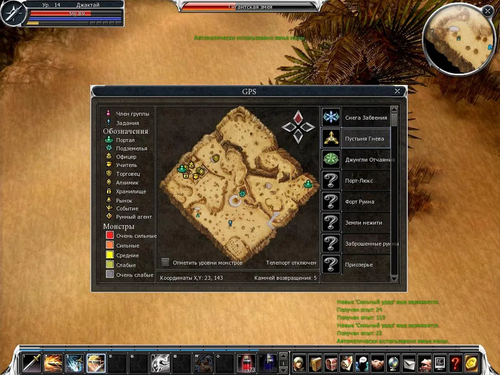 Не заблудиться в мире позволяет удобный GPS-навигатор. Если в панели квестов выбрано задание, то на навигаторе будет отмечено место, куда нужно сходить, чтобы выполнить квест.