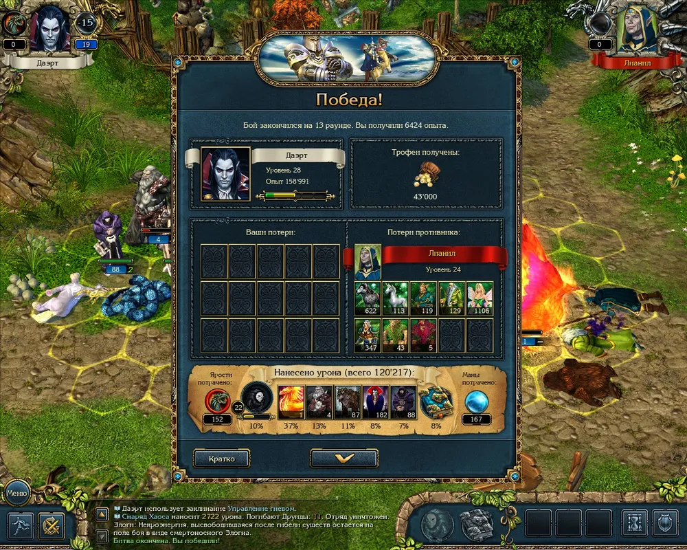 Бой с Лианилом выдался довольно напряженный, подлый каратель умудрился одного из моих великанов убить. Благо я не выгонял из своей армии ересиархов, а они как раз могут воскрешать юнитов 5-го уровня. А в остальном ничего нового, очередная победа.