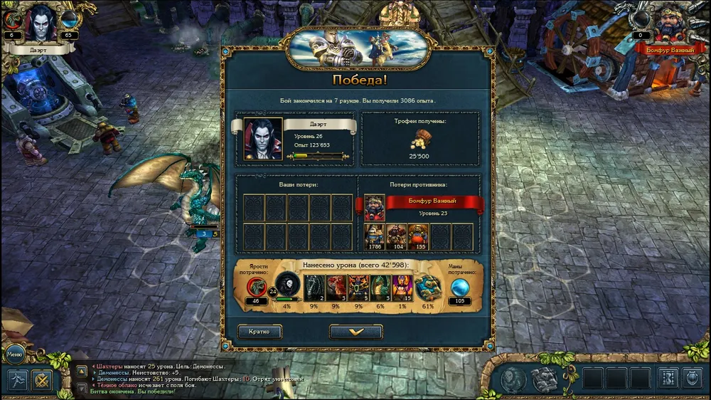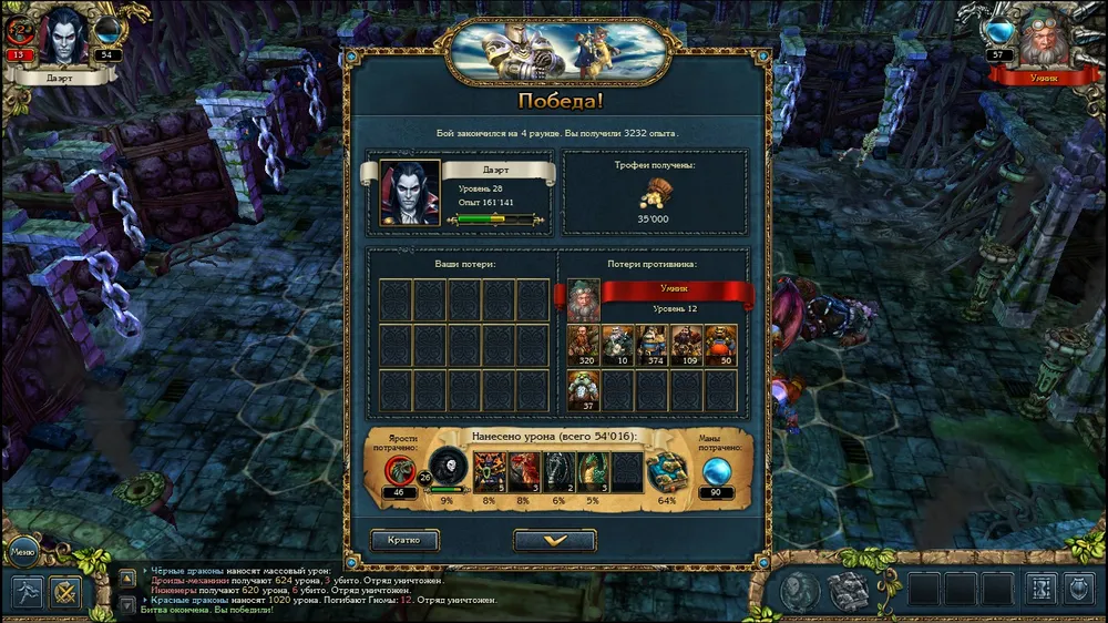 К счастью, у меня были все отряды целыми, а абилка изумрудного дракона на сбор маны неслабо помогла в ее восстановлении. К своему удивлению, я его победил!