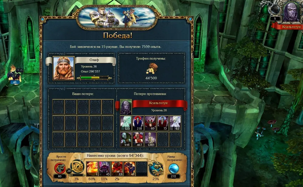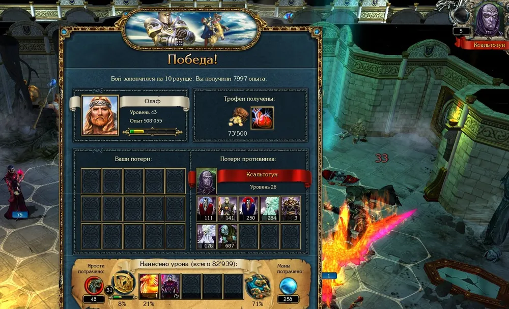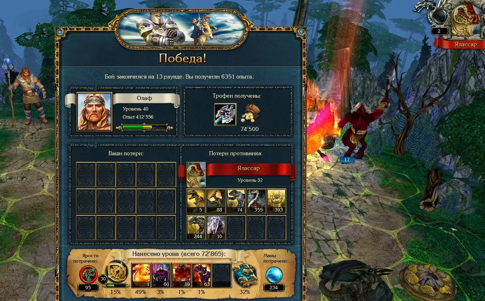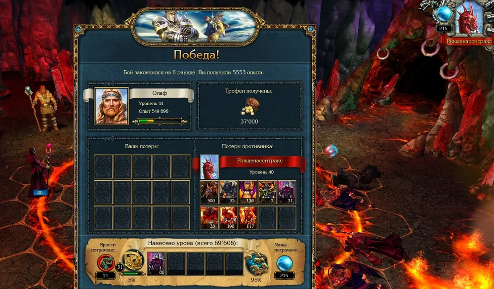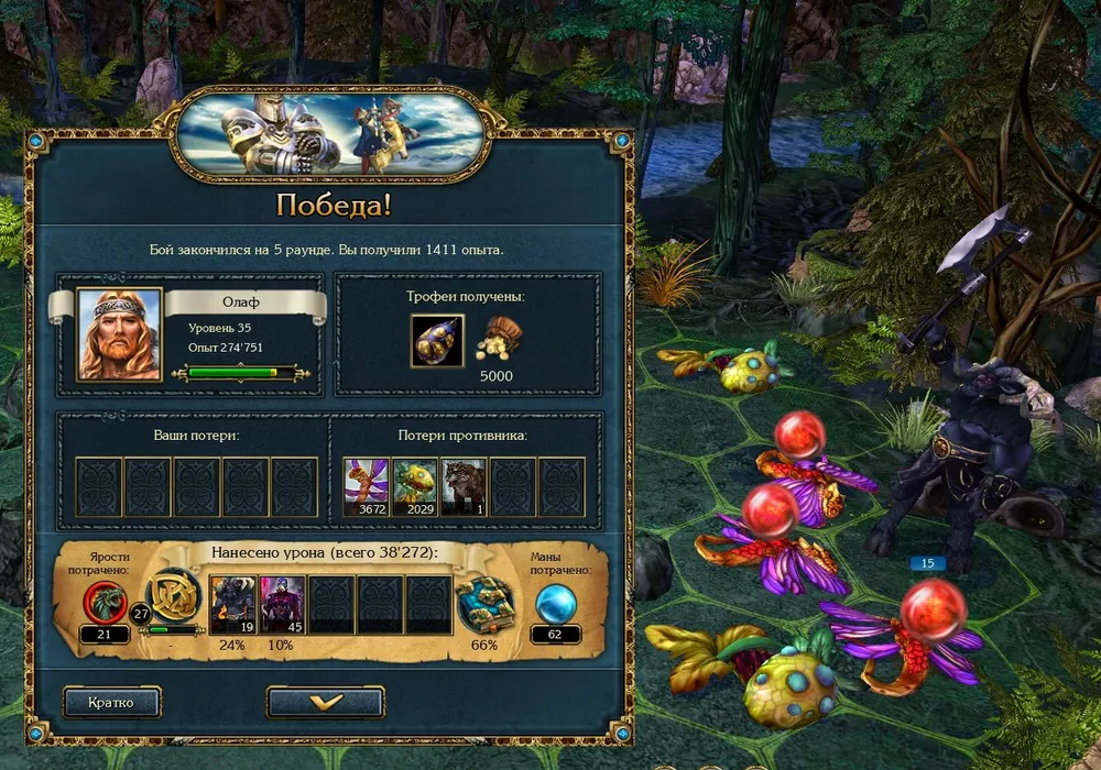 Впрочем, враги «смертоносные» только по названию: викинг без особых проблем справился с демонами, вздумавшими напасть. Кто предупреждён, тот вооружён: любители «Армагеддонов» истратили всю свою ману на «Фантомы» да «Порталы». Невидимые демонологи не атаковали, не призывали – лишь выжидали, позёвывая. Зато когда у врагов закончилась мана, и развеялись фантомы – нанесли страшный удар. То есть, нанесли удар не они, а Олаф, демонологи лишь добивали жалкие остатки вражеских войск, призывая почти по сотне церберов сразу.