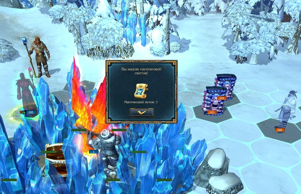 Сражение с драконами Исланда принесло Олафу три единицы интеллекта, ещё несколько отрядов, имеющих в своём составе по паре драконов, были оставлены про запас, на всякий случай. Пираты-призраки подарили Волхву свой сундук с редким заклинанием: не успели пробиться через кристаллы, Феникс оказался быстрее.