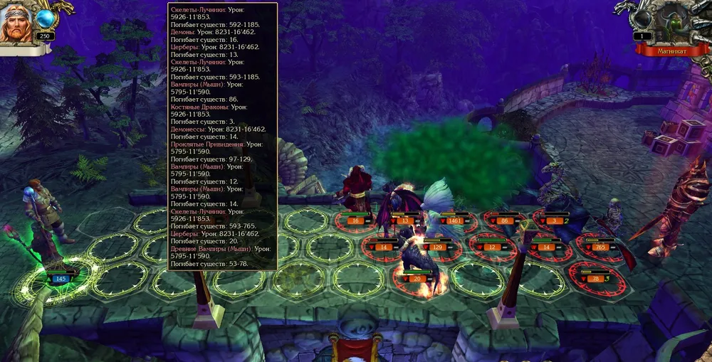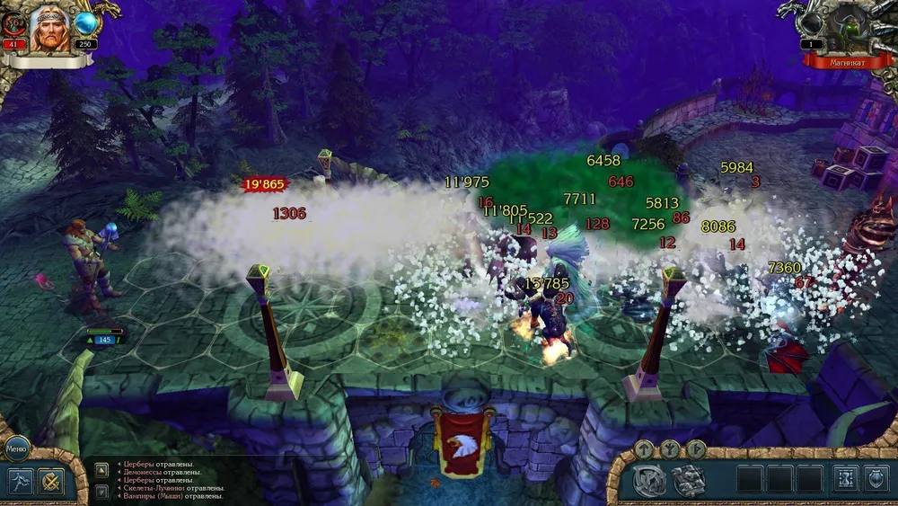 И в этот раз Волхв наконец применил полученный совет на практике. На первом ходу демонологи становились невидимыми, а со второго враги раз разом поднимались в воздух, обрушиваясь на землю в потоках ледяной воды. «Управление гневом» позволяло пополнять запасы маны за счёт ярости, так что «Гейзер» удавалось применять пять-шесть раз подряд. Затем, когда врагов становилось мало, демонологи призывали церберов или палачей, добивать врага. За каждый удар по противнику демоны повышали уровень ярости; а демонологи преобразовывали её в ману или дар Кристы, пополняя кошелёк Героя.