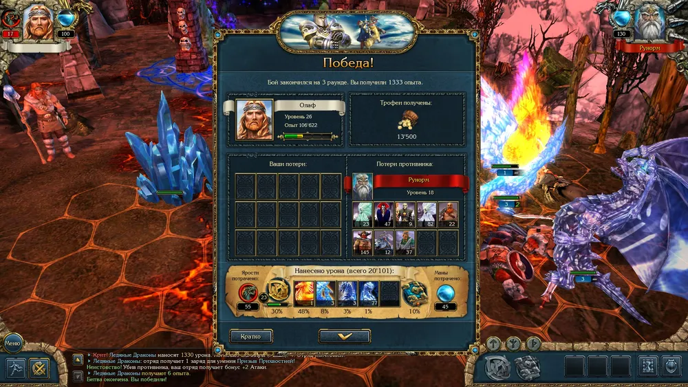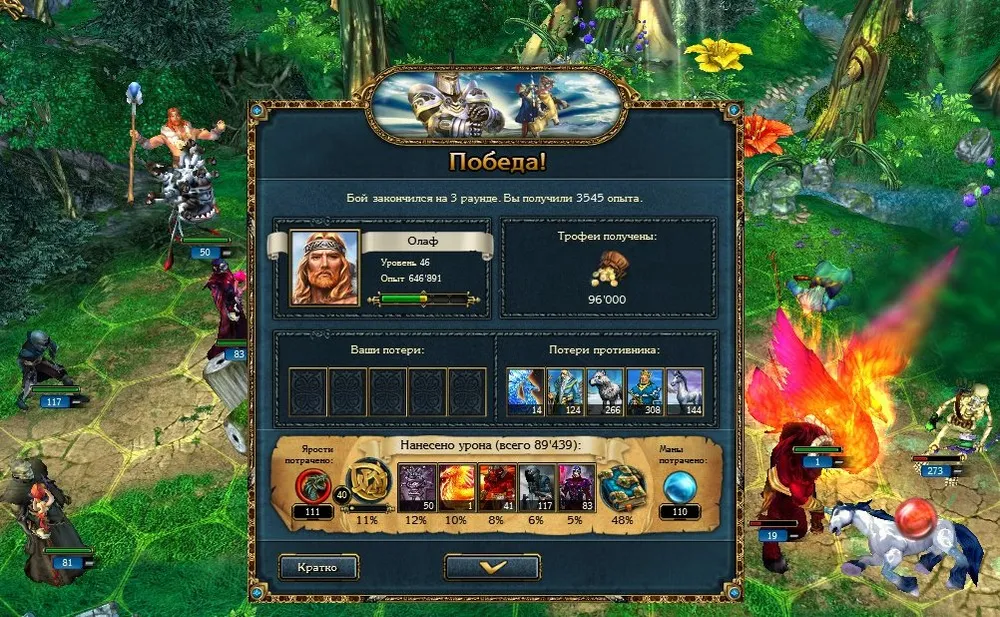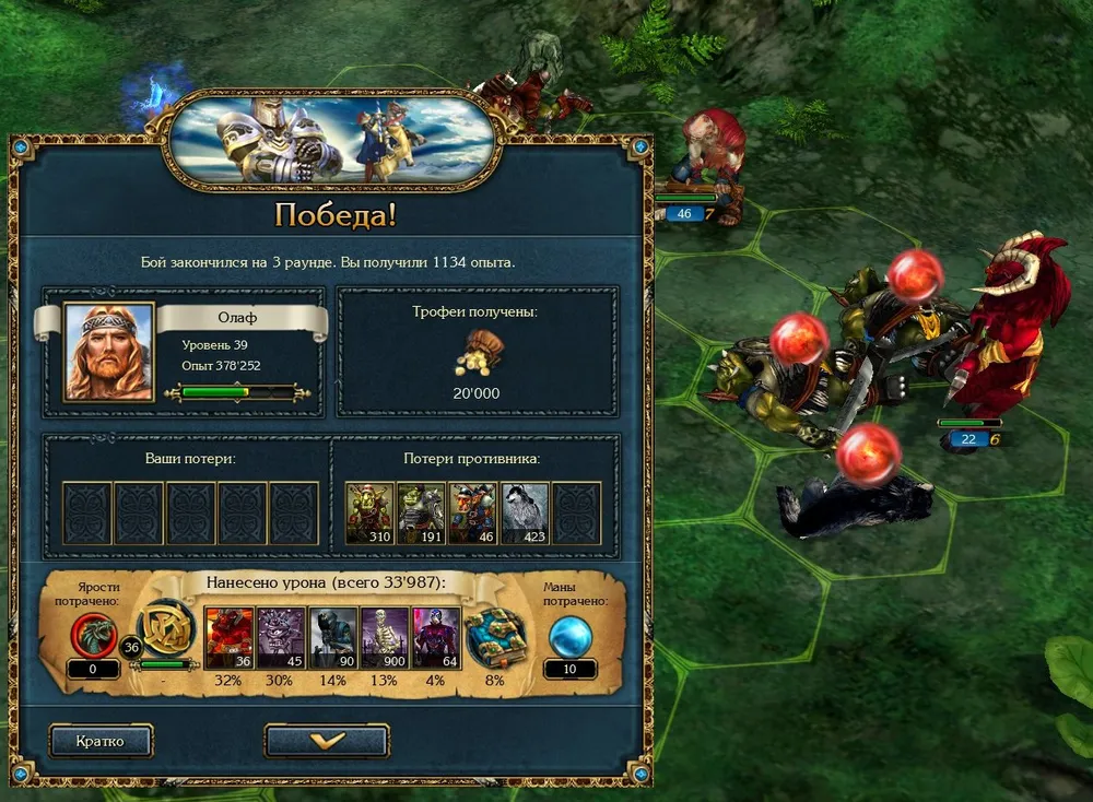 Когда численность вражеских импов снижалась до сотни в каждом отряде, наступало время феникса. Если единственным отрядом Олафа были некроманты, пострадавшие от атак архидемонов, их количество восстанавливали «Гипноз» и «Жертва».