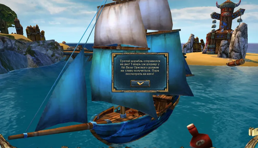 Зато выполнение задания по бою с тремя пиратскими кораблями - Некроманты тоже покровительствуют искусствам! – принесло «сюрприз» ожидаемый, являющийся проклятием этого задания: высшие силы в очередной раз отказались засчитывать потопленный корабль.