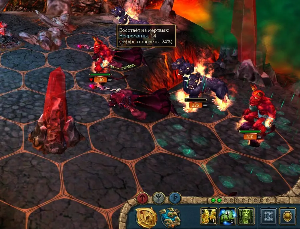 В следующем раунде некроманты поднимали уничтоженный вражеский отряд в виде нежити, а демонологи – восстанавливали численность отряда скелетов-лучников. В том случае, когда враг успевал нанести по ним удар. Как правило, вампиры вообще не принимали участия в боях, да и ассасинам редко приходилось наносить повторный удар.