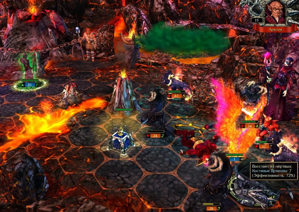 залил врагов ядом и шарахнул по драконам «Звездой смерти». А бестолковый Арктон не нашёл ничего лучше, как потратить свою ману на открытие демонических порталов. И, конечно же, проиграл бой.