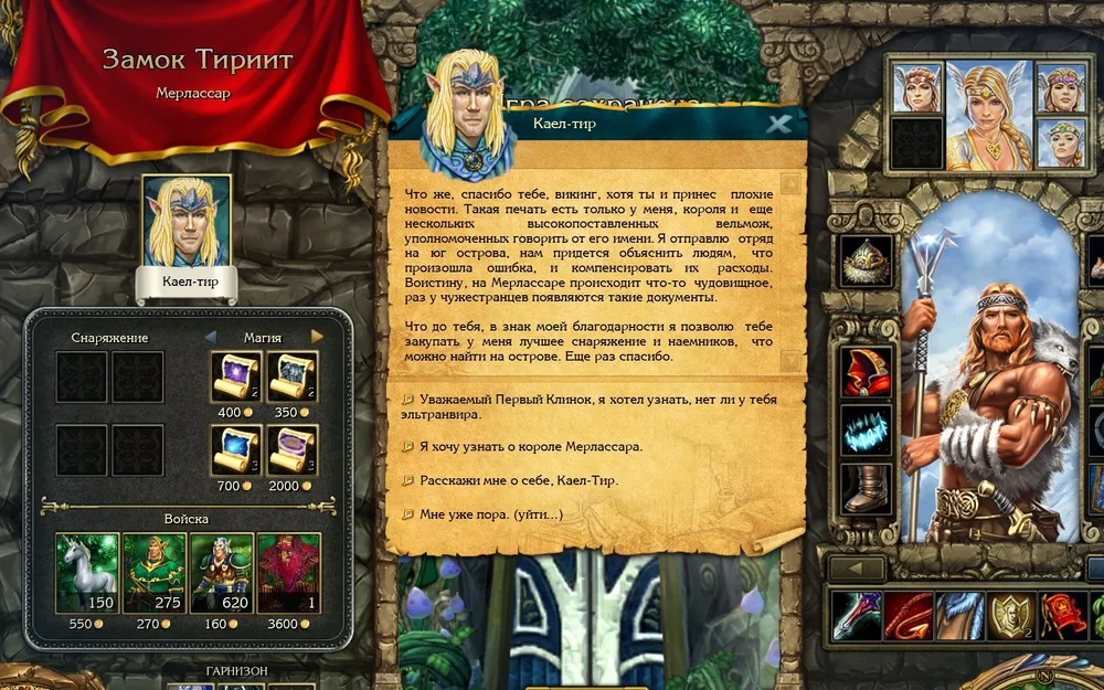 Благодарный Каел-Тир в ответ на информацию об уничтожении леса пообещал мне доступ к лучшему снаряжению и наёмникам из всех, доступных на острове. И состав его наёмников действительно обновился: в замке появился древний энт. Единственный.