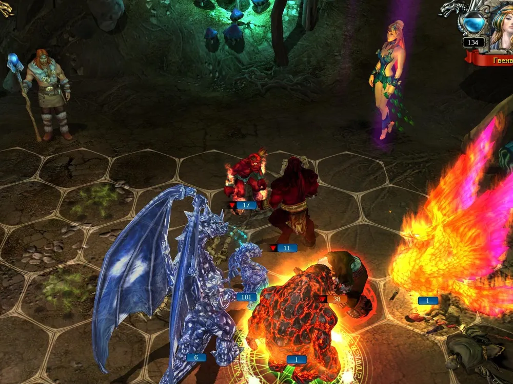 Если дополнить эту пёструю толпу лавовым големом и древним фениксом, то с ними вряд ли кто-то сможет справиться. Впрочем, я был вынужден убрать из войска инженеров: Гвенвинн, как истинная эльфийка, ненавидит гномов и лупит по ним атакующей магией. Затем следует баг «нулевого урона» - и всё.