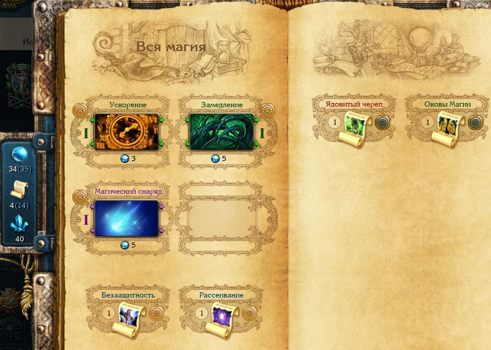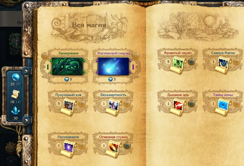 Вновь Владислав удивил и даже пристыдил меня простотой решения «неразрешимой» проблемы… Всего-то и нужно было: скупать все самые мощные магические свитки и в нужный момент взять с собой! ( Опять сыграла дурную роль привычка к предыдущим частям: в них не было проблем с книгой магии, я попросту продавал ненужные свитки с заклинаниями.) Союзники прекрасно выучивают недостающие заклинания своих школ, а остальные зачитываются со свитков. (Если вы получили три уровня «Артефактора», проблем с кристаллами быть не должно.)