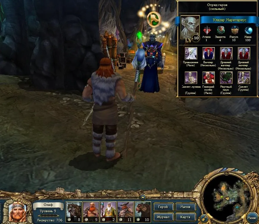 Что, уже победа? Увы, ещё нет - в подземелье засел некромант Уладар: десятый уровень, сто маны и десять интеллекта.
