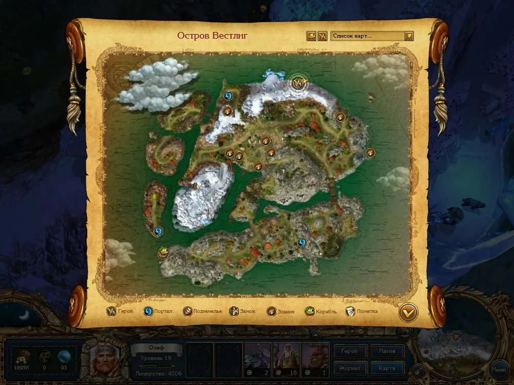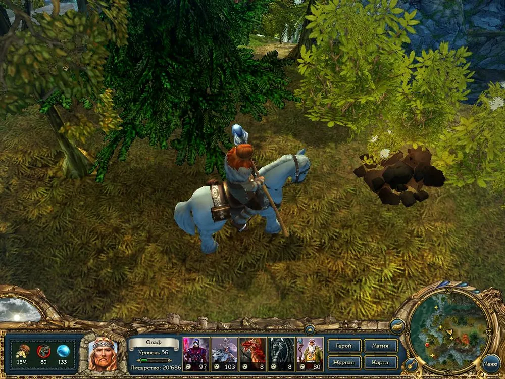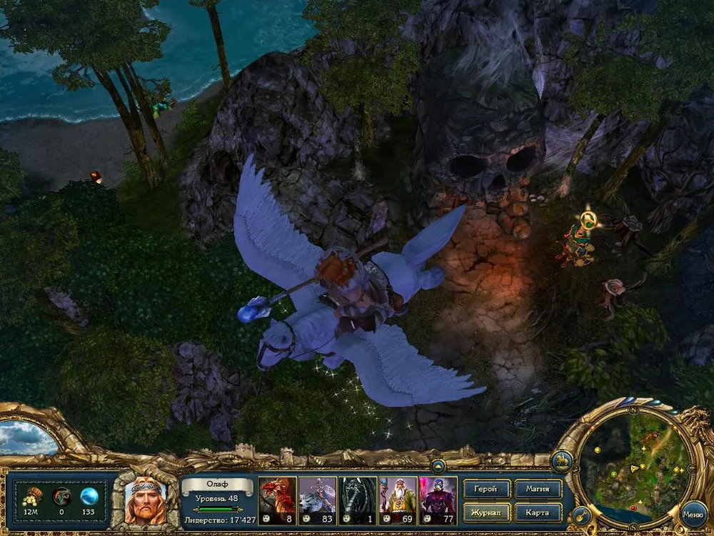 К валькирии можно пробраться, не вступая в бой с врагами, а отвлекая и заманивая их. Следующая по важности задачи: поговорить с волхвом Рунвальдом. Алхимик пошлёт вас в пещеру за грибами; при должной сноровке их также можно собрать, не вступая в бой. Сразу после взрыва Криста научит вашего коня летать. Дважды разговариваем с Рунвальдом, и нам открывается карта ещё одного острова. Хотите — зачищайте остров от всех врагов, хотите — собирайте всё, что плохо лежит и отправляйтесь исследовать следующие острова. Если вам не попалось заклинание «Ловушка», оставляйте в покое самые слабые отряды врагов — они пригодятся в дальнейшем, для получения титулов «Капканщик» и «Хранитель». (На Вестлиге мне не удалось выполнить задание по поиску капитанского кителя — нашлось только четыре ростка терний из пяти. В «стимовской» игре такой проблемы не возникло. Забегая вперёд — ростки терний вам ещё попадутся, и квест будет выполнен.)