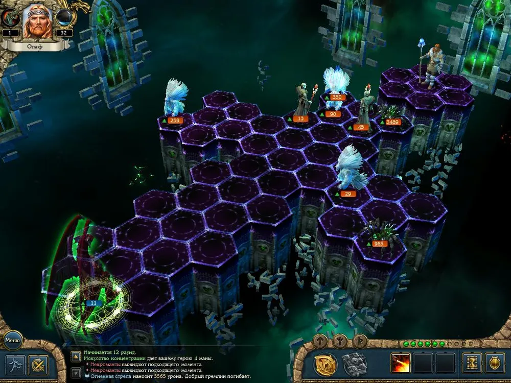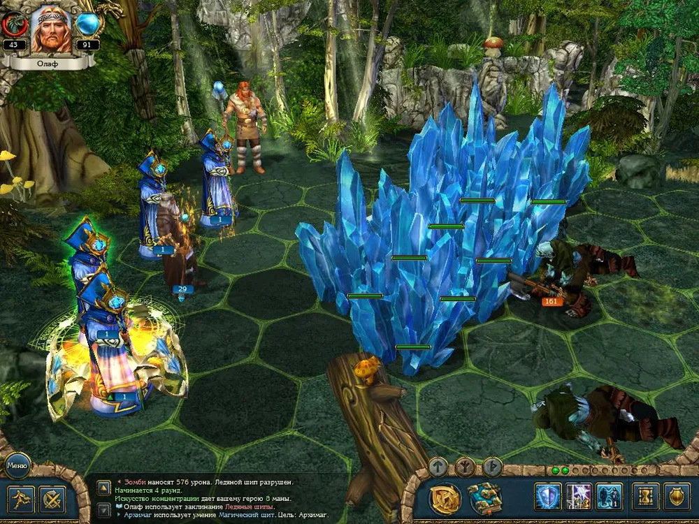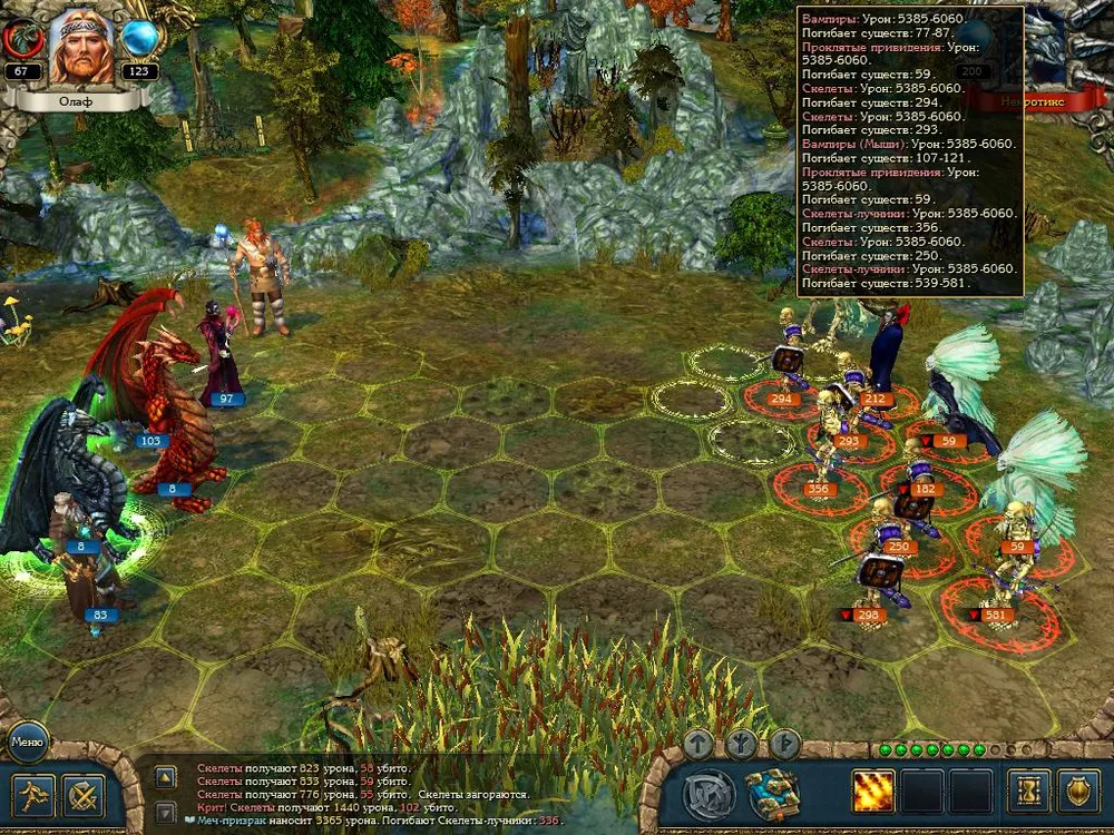 Пикируя с высоты, собираем всё бесхозное, после чего начинаем зачистку территории вокруг замка. Архимаги накладывают на себя «Магический щит». Через раунд – ещё раз. За время правильно проведённого поединка (до десятого раунда) они успеют скастовать «Магический щит» двадцать раз. Как только будет достигнут третий уровень «Хранителя», увольняем архимагов, забираем в войско северных воительниц и приступаем к более серьёзным боям.