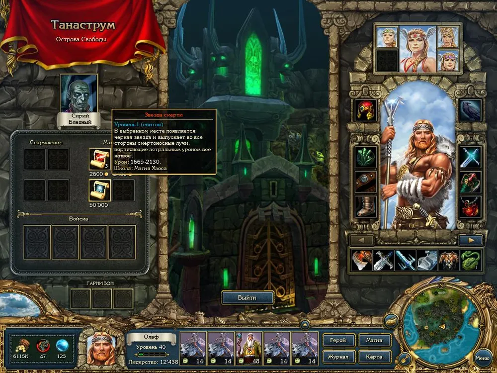 Внимательно следите за количеством своего золота — после посещения пиратских островов с целью пополнения войск, я обнаружил пропажу пяти миллионов золотых. Не фатальный баг, но неприятный. Также возьмите себе за правило обязательно собирать все сундуки на поле боя: заклинания «Невидимость», «Ловушка», «Призрачный меч» и все свитки магии странствий я приобрёл именно таким способом, в продаже их не было.