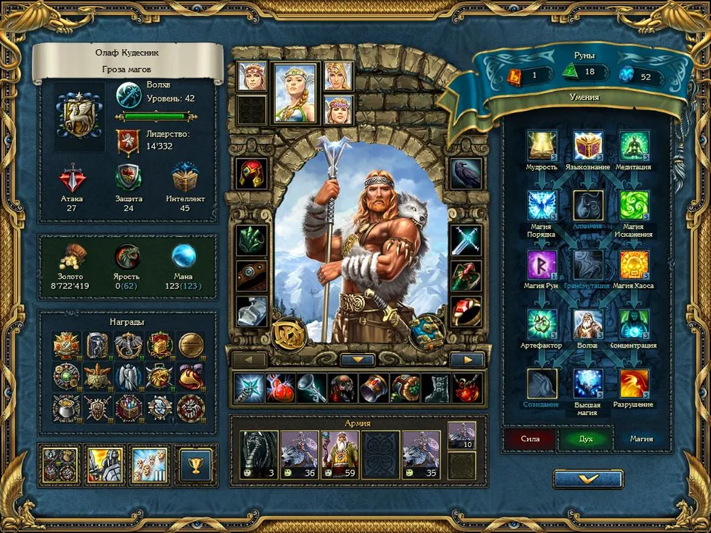 На мой взгляд, в умениях духа нужны «Разведка», «Обучение» и «Сила духа». В умениях силы – вся левая ветка и три верхних позиции правой. Где бы ещё набрать столько рун силы…