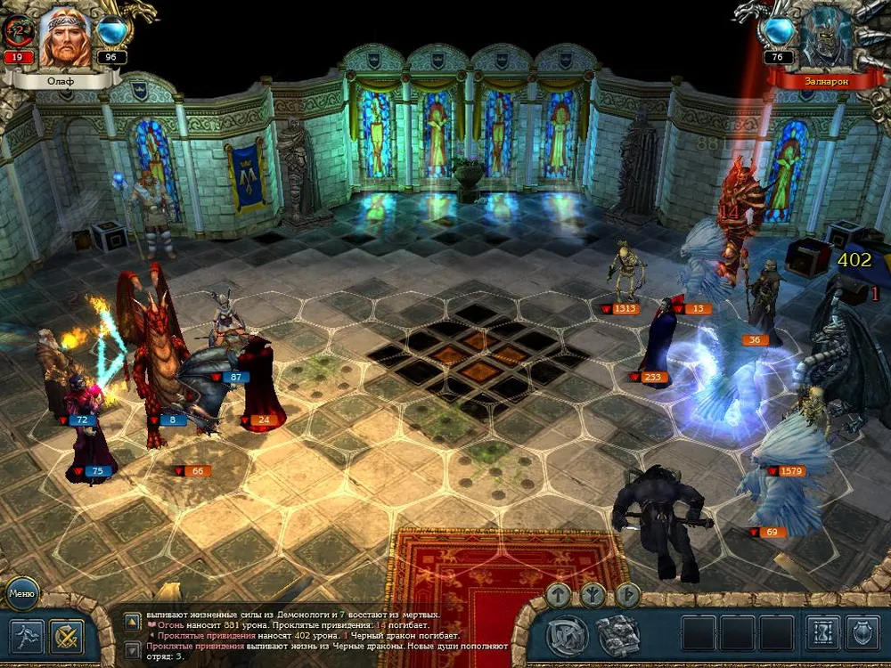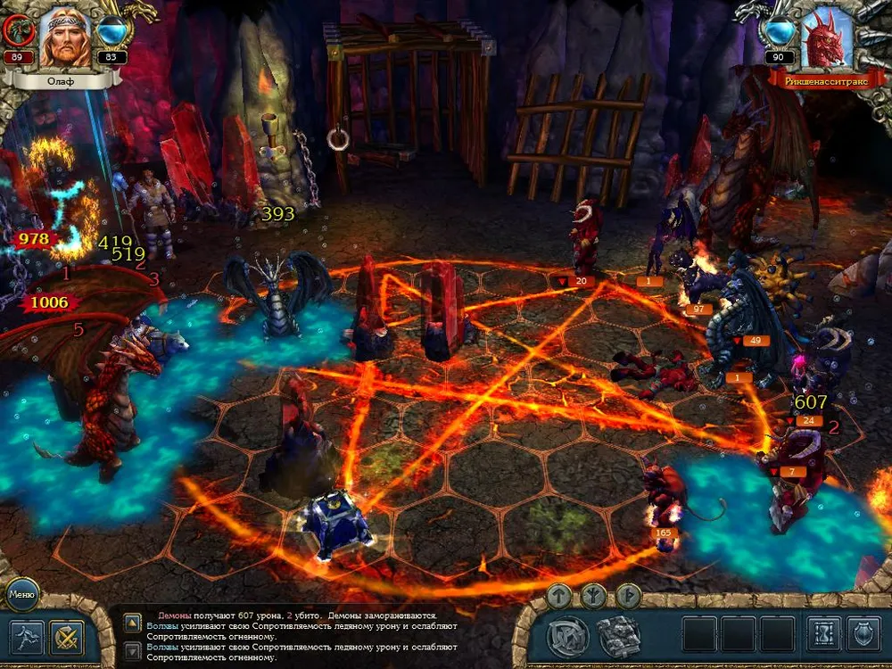 Но если остальных драконов можно убить, то ледяной, благодаря своему умению, бессмертен: стоит попытаться его уничтожить, как игра мгновенно вылетает. (Я трижды возвращался к этому замку, с разными войсками и магией: без толку, игра вылетает раз за разом.) Вот такой сюрприз…