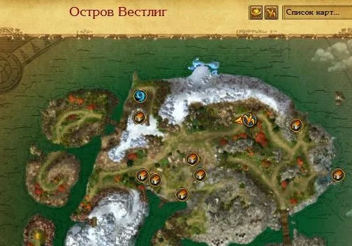 Впрочем, даже если бы и была, я бы проиграл: этот паук посерьёзнее предыдущих. В отличие от своих братьев он умеет атаковать дистанционно, а его паутина не просто обездвиживает, но заставляет пропускать ход. Во время короткого боя войско в основном сражалось даже не с ним, а с вызываемыми пауками, на нанесение ударов по боссу просто не было времени. Оказалось, я недостаточно внимательно обследовал острова. Точнее, один из них — Вестлиг.