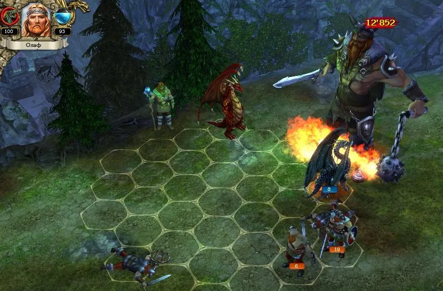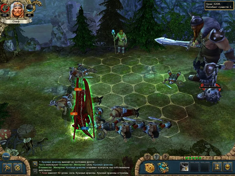Драконы также становятся на крайние линии поля, но при первой возможности нападают на Локи: атаки великана в ближнем бою причиняют незначительные повреждения.