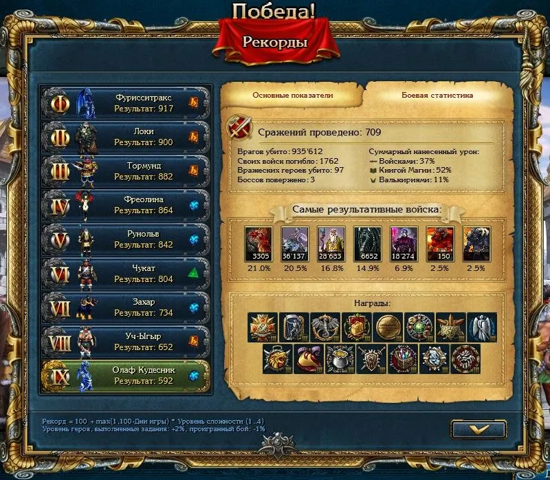 Здорово озадачила финальная таблица «Самые результативные войска»: за всю игру у меня было 25 красных драконов, какие ещё три тысячи? То же самое и с остальными войсками. Опять баг?