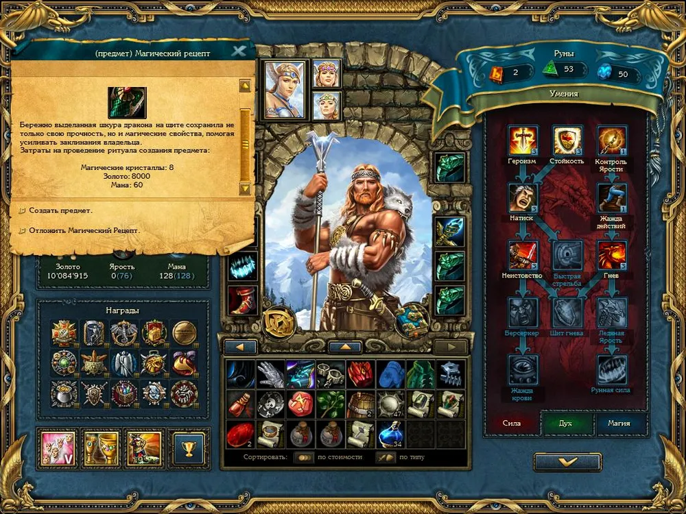 Знаете ли вы, что создание предметов по магическим рецептам может сыграть очень злую шутку с вашим золотым запасом? Причём это относится – увы! – ко всем без исключения предметам. Например, вы задумали создать Чешуйчатый щит, заявленная стоимость которого – 8000 золотых. Создаём щит, и убеждаемся, что из кошелька исчезло пять миллионов!