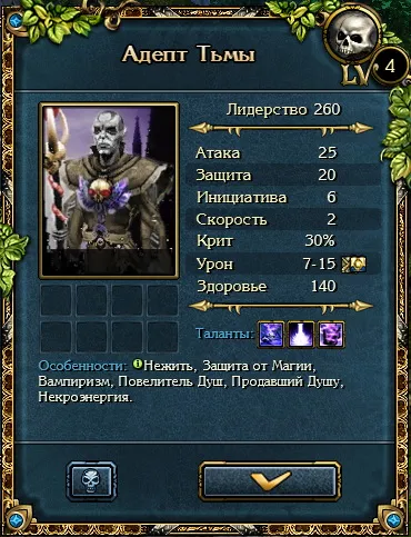 Что из себя представляет бонус? Это увеличение на определенное число параметров существа, обычно это 2 единицы или 2% (в зависимости от того, в чем выражается характеристика). Исключением являются параметры: скорость и инициатива, они могут увеличиться один раз на 1 единицу. Всего существо может набрать 10 уровней. Призываемые существа опыт не получают.