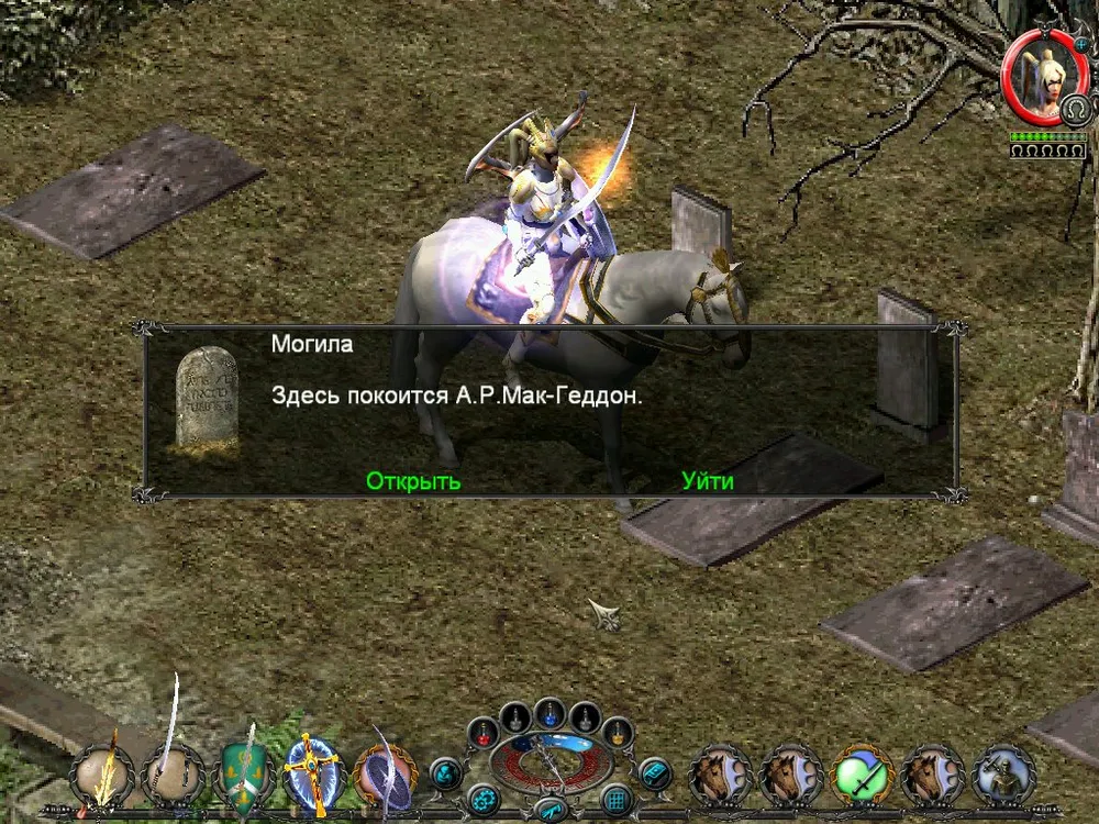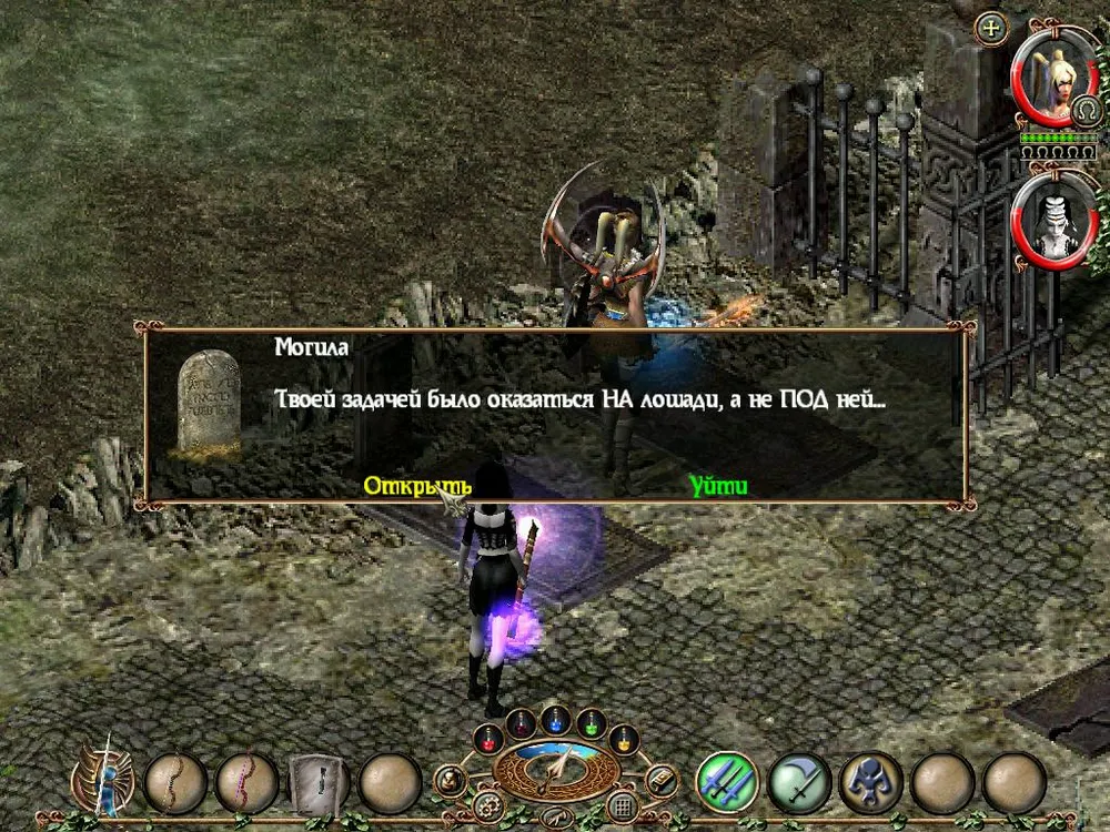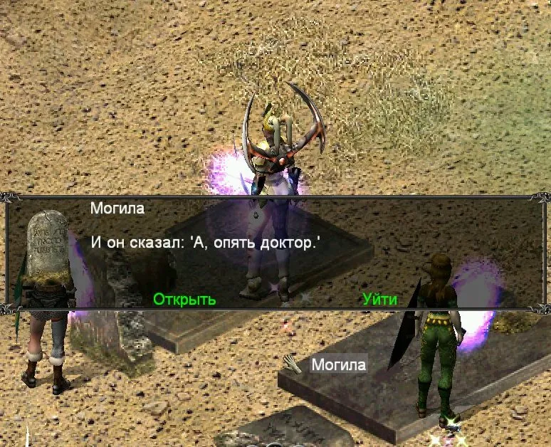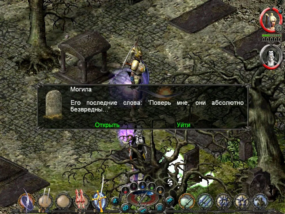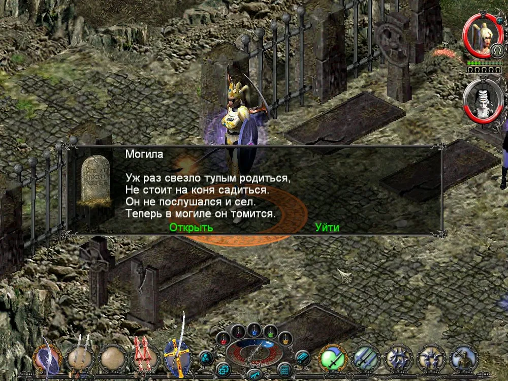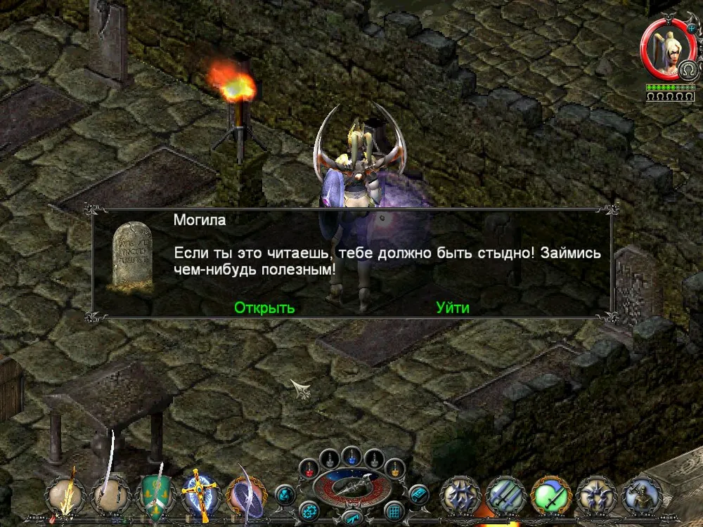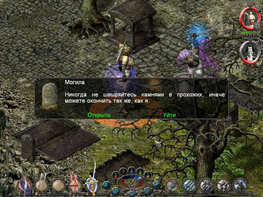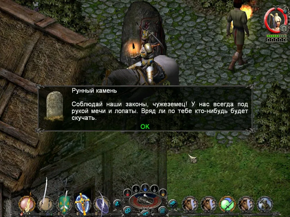 Одним из отличий Sacred является большое количество различных надписей: шутливых, серьёзных, информативных. Большинство из них представляют собой эпитафии на могильных камнях, чуть реже послания высечены на камнях рунных. Я взял на себя труд познакомить вас с некоторыми из них; а также - с отдельными забавными моментами.