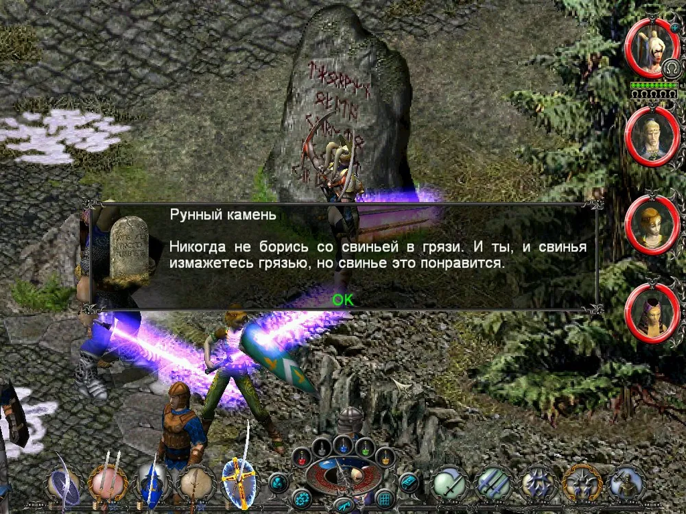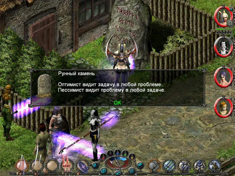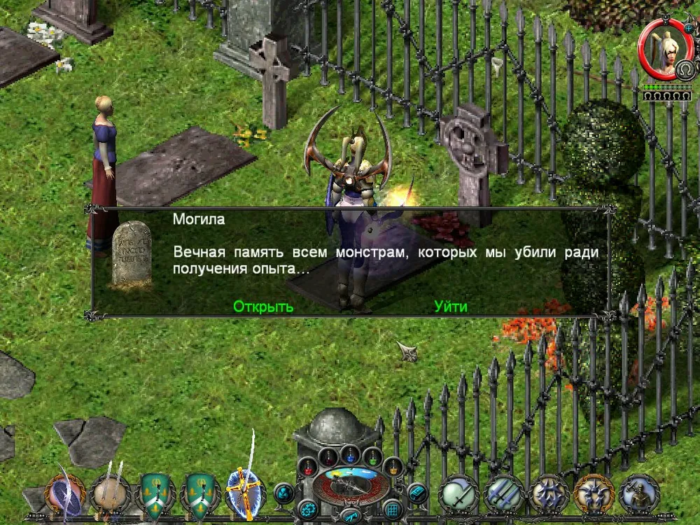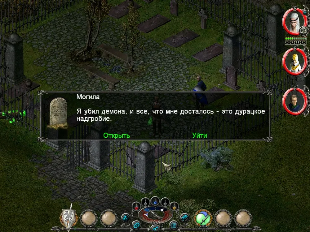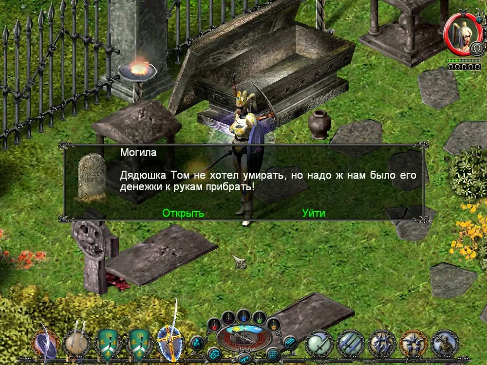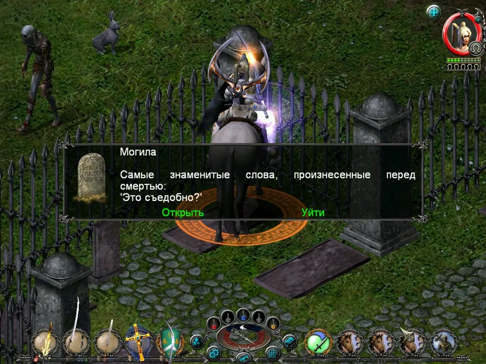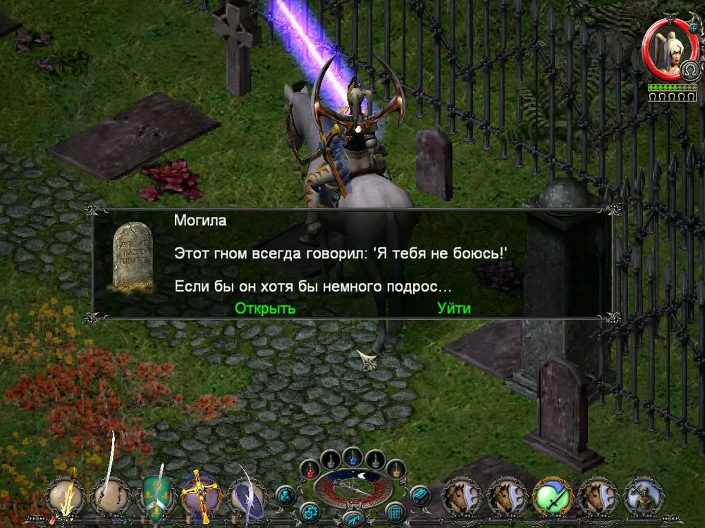 Одним из отличий Sacred является большое количество различных надписей: шутливых, серьёзных, информативных. Большинство из них представляют собой эпитафии на могильных камнях, чуть реже послания высечены на камнях рунных. Я взял на себя труд познакомить вас с некоторыми из них; а также - с отдельными забавными моментами.