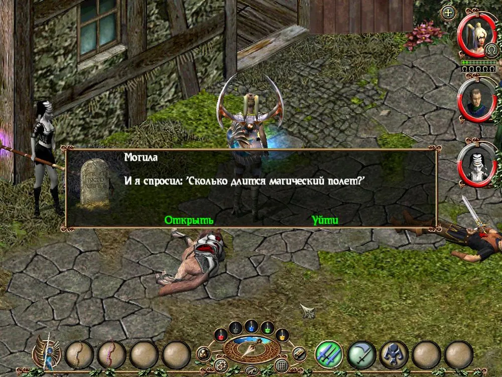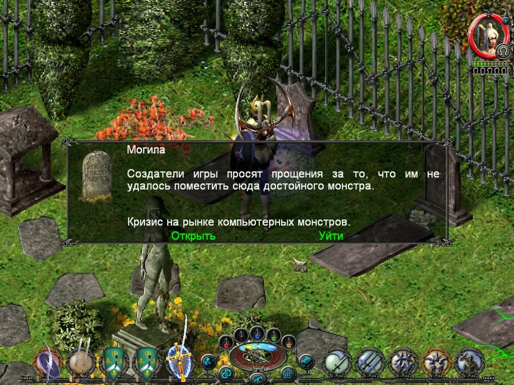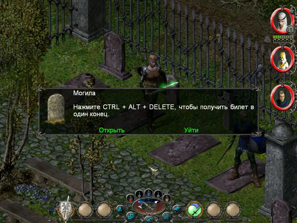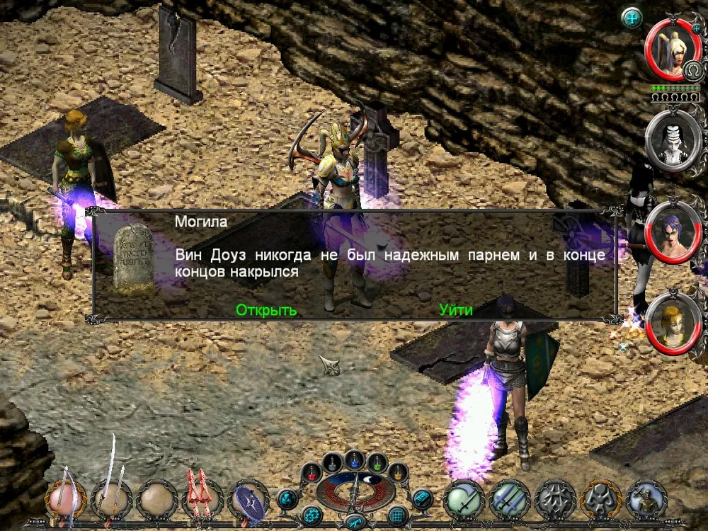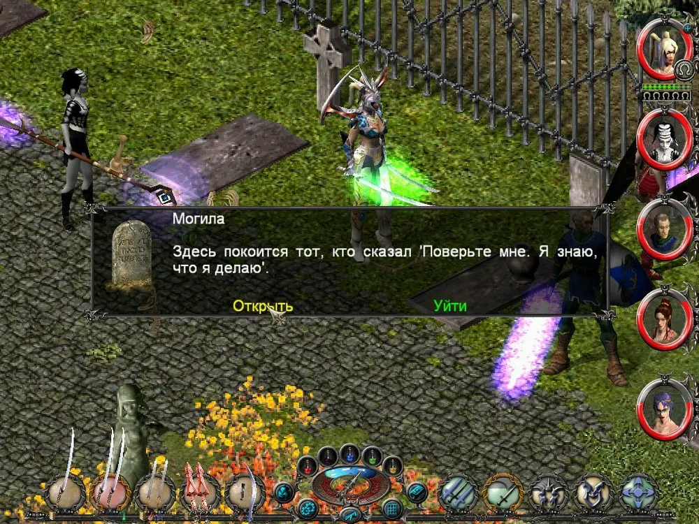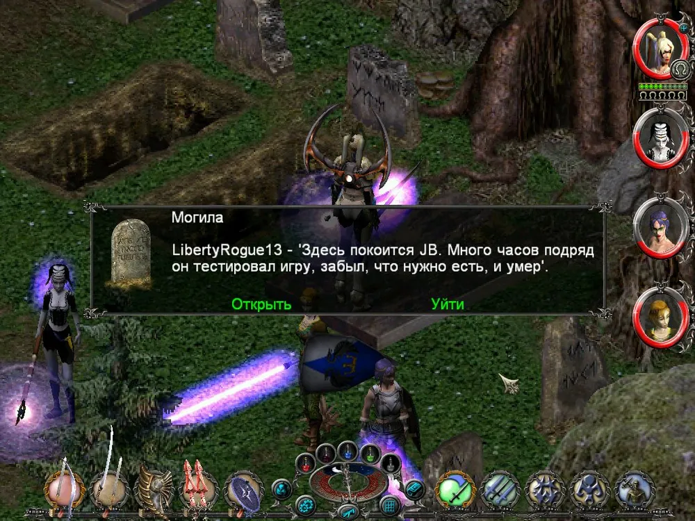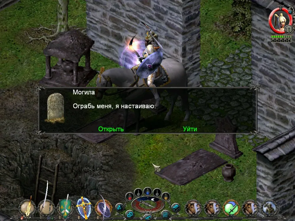Одним из отличий Sacred является большое количество различных надписей: шутливых, серьёзных, информативных. Большинство из них представляют собой эпитафии на могильных камнях, чуть реже послания высечены на камнях рунных. Я взял на себя труд познакомить вас с некоторыми из них; а также - с отдельными забавными моментами.