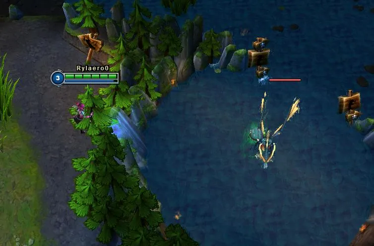 Большая дальность навыков позволяет украсть у врагов Дракона или Нашора. Поскольку ее Q действует как маленький жезл, вы легко сможете проверить обратную сторону утеса. Используйте Q и для проверки кустов, просто так входить неудобно, поскольку можно и огрести, особенно в середине игры.