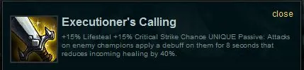 Самая часто используемая способность. У каждого уважающего себя пирата помимо сабли должен быть однозарядный пистолет. Примечательно, что выстрел Gangplank'a хоть и наносит магический урон, накладывает на жертву все те же эффекты, что и обычные атаки, к тому же пират имеет шанс нанести критическое повреждение (Привет, вещи на шанс и силу крита!). Именно по-этому нам нужно купить что? Правильно, все тот же Executioner's Calling. Зачем? Он дает нам доп. шанс крита, снижает силу лечения врагов, и дает нам кражу жизни при атаках (В том числе и с использованием Parrrley).