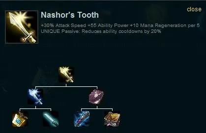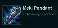 Вначале лучше всего взять Meki Pendant (7 mana regen per 5 sec), который впоследствии можно превратить в Chalice of Harmony, либо в Nashor's Tooth