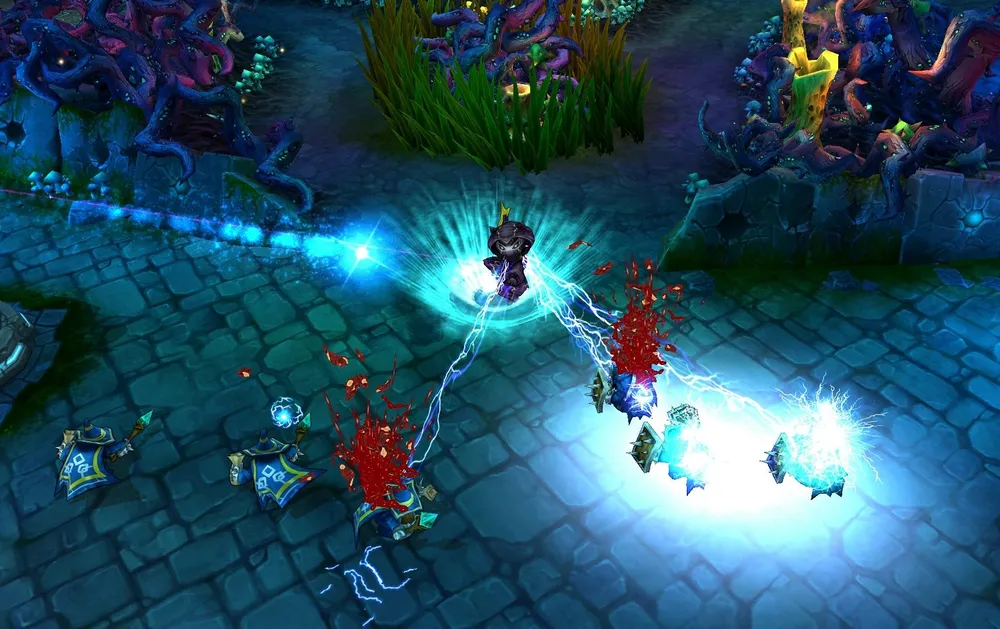 Молниеносный рывок (Lightning Rush): Кеннен превращается в шаровую молнию, несколько секунд он двигается с невероятной скоростью и может проходить сквозь юнитов. Любой враг, до которого он дотронется, получает урон и Метку Бури.