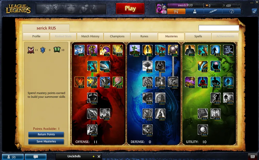 Перед тем, как вступить в первую битву, желательно распределить по веткам очки мастерства (Masteries). Ваш выбор будет зависеть от того, каким чемпионом вы решите играть. Одним требуется вложиться в защиту (armor/resist; тут необходимо обратить внимание на то, кого больше в команде противника: магов, наносящих магический урон, или физ-дамагеров, наносящих, следовательно, урон физический), другим – в силу способностей (ability power; это касается, прежде всего, магов и некоторых Ассасинов/Саппортеров – например, Кеннена), третьим – в показатель критического попадания (critical strike; самый очевидный пример – Ганкпланк, который способен «критовать» по 1к HP). Пока вы новичок, позволяйте себе брать предпочитаемого героя – более опытные игроки подстроятся под вас. Но на более поздних уровнях иногда приходится отказываться от любимчика в угоду командной игре. А так как в League of Legends командная игра стоит чуть ли не на первом месте, взаимодействие между играющими должно быть максимально четким.