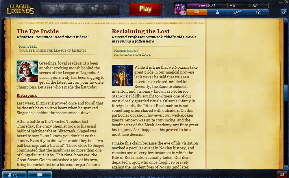 Riot Games предлагает ознакомиться с миром LoL поближе. Для этого существует специальный внутриигровой журнал