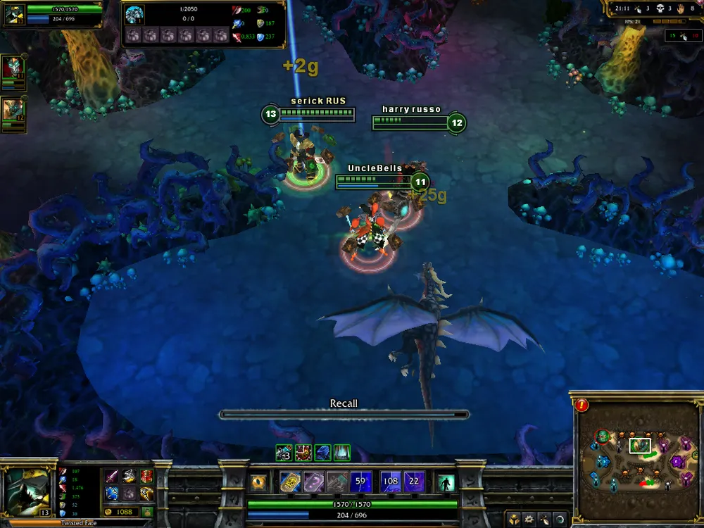 Одно из самых полезных нововведений - Recall. Заклинание доступно всем и каждому, не имеет откада. За пару секунд вернет вас прямиком на базу. Отменяется при получении урона