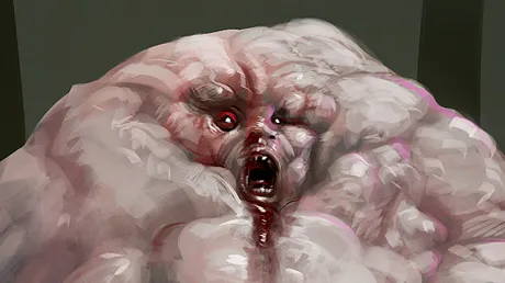 Пока создавалась первая модель Громилы, мы тестировали его в игре, используя модель Охотника в футболке.