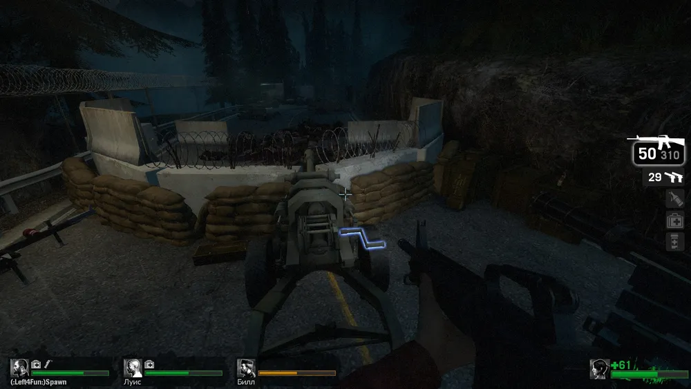 А если даже несмотря на огромное количество вариантов путей-дорог ходов-выходов вам все же станет скучно, вы можно запросто отыскать вот эту гаубицу, которая так же как и пулеметы не несет никакой пользы, выстрелить из неё, и, конечно же, привлечь толпу зомби.