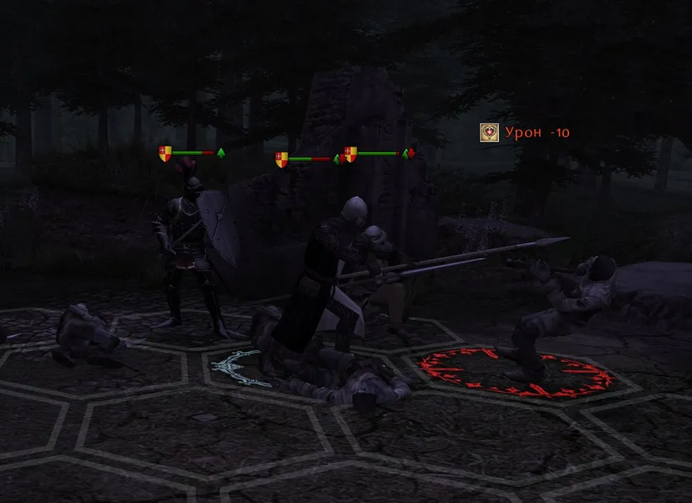 Герой стоит в центре, по краям: пехотинец и стражник. Каждый следующий отряд - всего их шесть – имеет большую численность, чем предыдущий; поединки будут усложняться. Если стражник достиг третьего уровня и получил способность «Контратака» - вы победили. (Мой копейщик в одиночку уничтожил девять зомби из двенадцати, по встречному удару на каждого.)