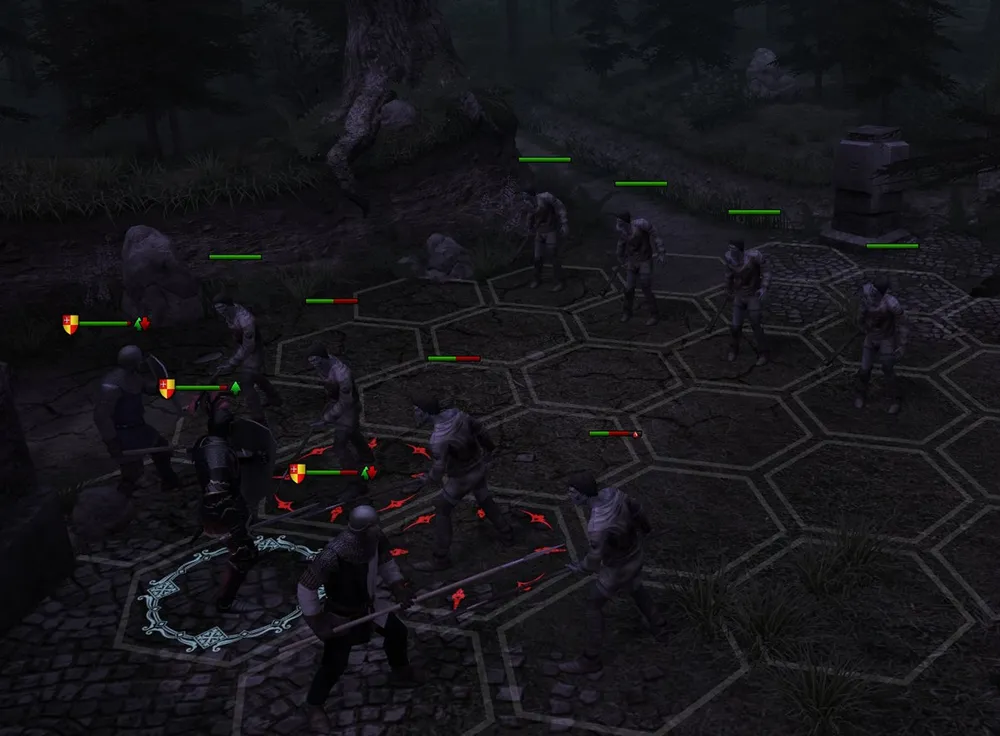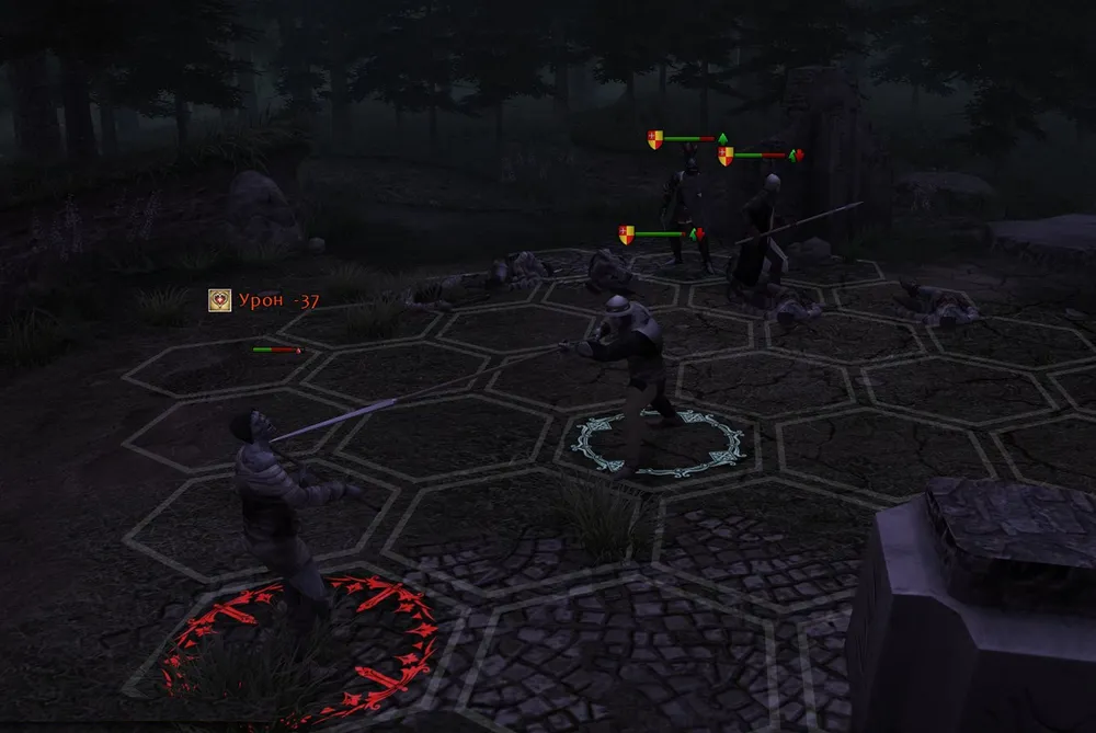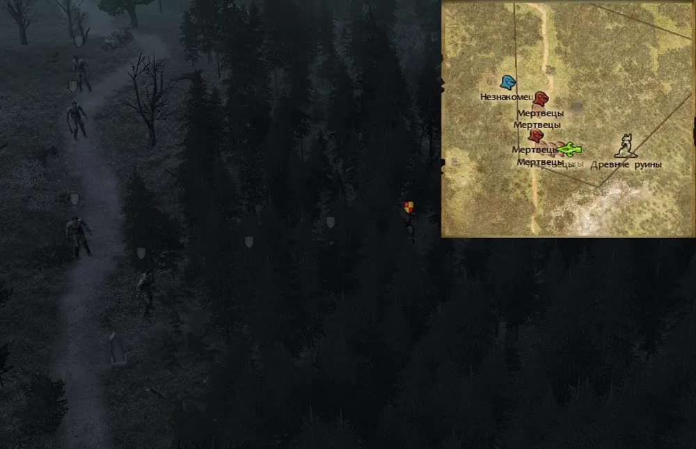 Попав на эту карту, сразу решайте, кого вы оставите в своём отряде: половина бойцов непременно сбежит, едва завидев мертвецов. В моём случае всегда удирали стоящие в первой шеренге, рядом с героем. Сражаемся с парой зомби, забираем кошачье зеркало, экипируем его и освящённый перстень рыцарю и ждём: в лесу или на дороге, мертвецы не пройдут мимо.