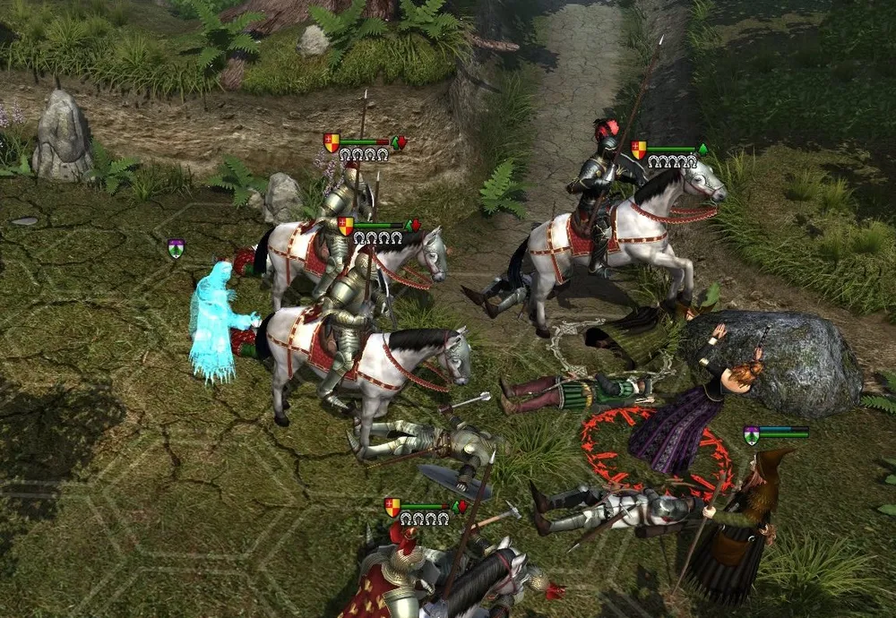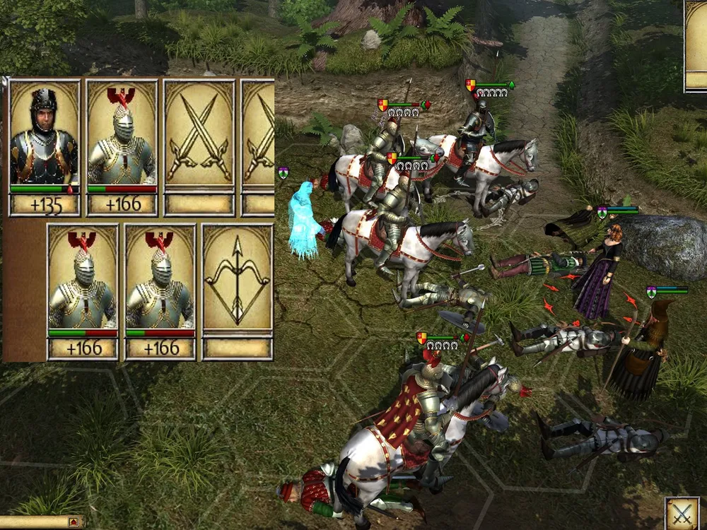 Как только у Урсулы фон Фихтен останется три спутника, остатки отряда «сдадутся в плен». (Ненавижу эту особенность!) Вдова ушла от заслуженной мести? Не бывать этому! Чтобы избежать подобной неприятности, следует построить рыцарей не линией, а уступом; и немного задержать ходы – чтобы Урсула призвала призрака.